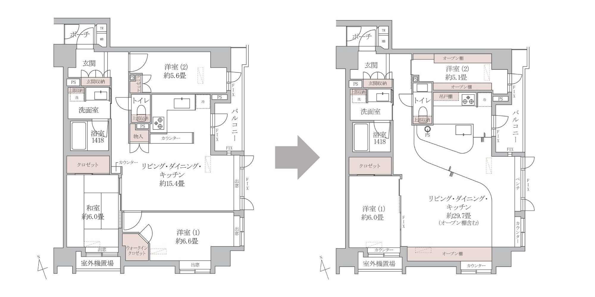間取り BEFORE→AFTER (画像提供:株式会社コスモスイニシア)
