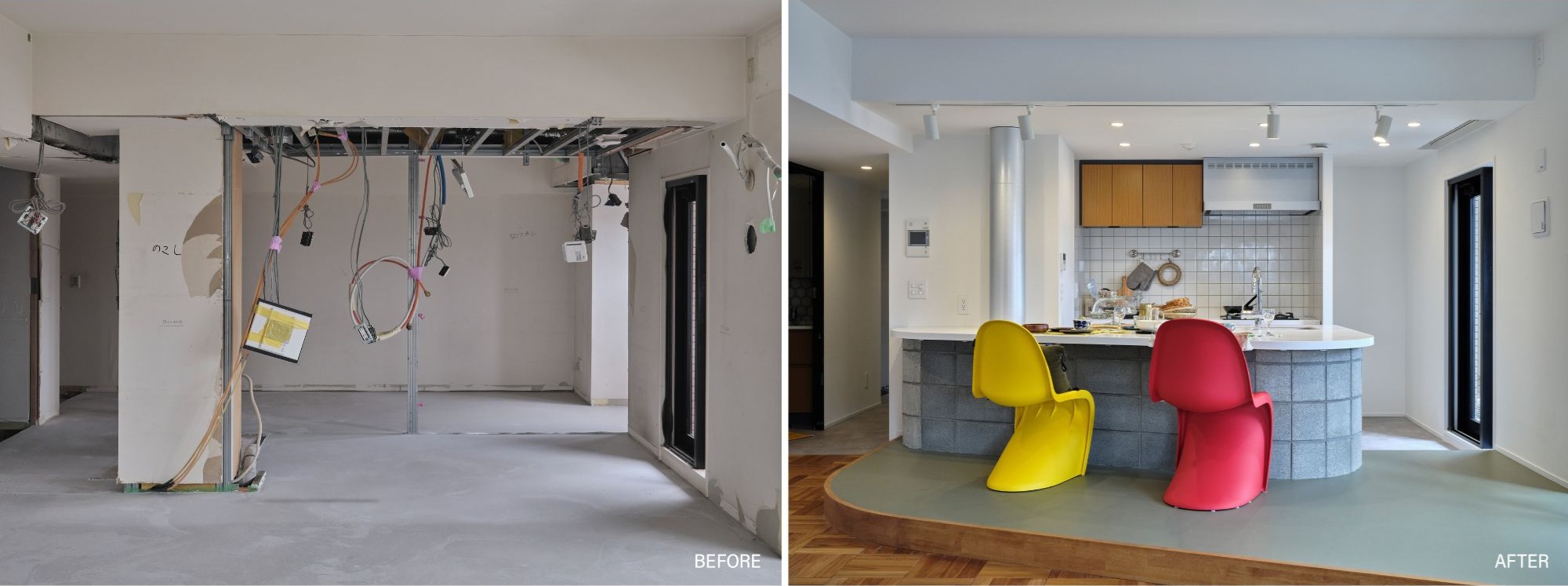 BEFORE:工事中の状態 → AFTER:住まい方のイメージ